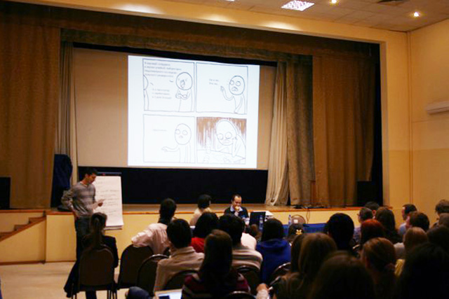 В первый же день заезда, уже под вечер, Алексей Белянин, приезжавший в Иркутск в рамках цикла лекций «Байкальские чтения», устроил нам мастер-класс по экспериментальной экономике, явно дав понять, что не питаться мы сюда приехали. На этом первый день завершился, но ободряющий и настраивающий на продуктивную работу пинок участники школы с удовольствием получили. К слову сказать, нас, таких умников, было около 90, поэтому несложно представить, какая бурная активность разворачивалась в течение всей школы.
