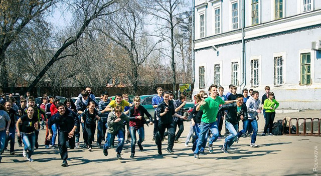 Ну а следом за научной конференцией перед корпусом собрались наши первокурсники, чтобы ворваться в яркое и значимое событие в их жизни - посвящение в студенты ИМЭИ!