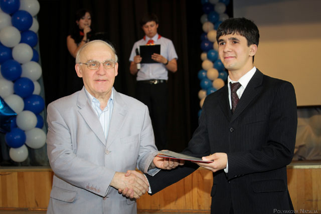 Наш торжественный праздник посетил председатель первичной профсоюзной организации студентов ИГУ Александр Манзула, который вручил благодарности ректора ИГУ студентам, которые за время обучения отличились в научной, общественной, спортивной и творческой деятельности.