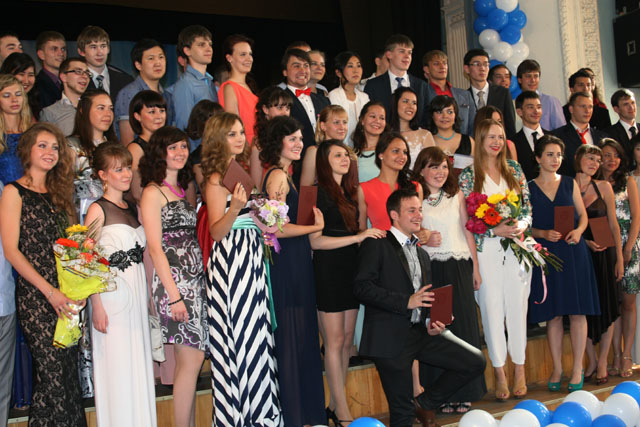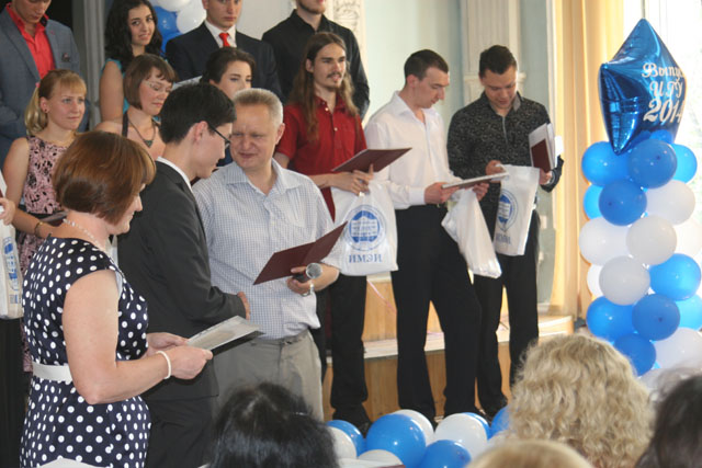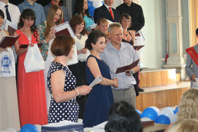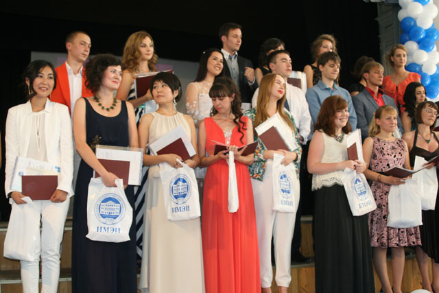 Торжественное вручение дипломов выпускникам открыл уже ставший традиционным вальс выпускников. Исполняющий обязанности директора ИМЭИ ИГУ профессор М. В. Фалалеев поздравил студентов с завершением обучения и пожелал успехов в профессиональной деятельности, а также вручил 30 дипломов с отличием. Среди выпускников немало ребят, ярко проявивших себя в учебе и в научной жизни Института, есть замечательные спортсмены и звезды сцены. Это отличники учебы, многократные участники научных конференций и олимпиад, победители стипендиальной программы фонда Оксфорд - Россия Ольга Хайрутдинова, Юрий Соколовский, Полина Хисамова, Ксения Ситникова, Наталья Михаханова, Анна Седых, Наталья Адушинова, Екатерина Кадникова, Яна Макольская и многие другие.