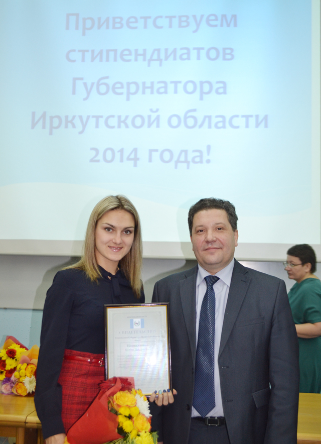25 декабря состоялось торжественное вручение студентам и аспирантам вузов именных стипендий губернатора Иркутской области. Критериями отбора стипендиатов стали академическая успеваемость, участие в общественной и научно-исследовательской работе, количество публикаций в научных журналах, участие в конференциях. Среди студентов и аспирантов ИГУ, получивших именную губернаторскую стипендию, стала студентка ИМЭИ ИГУ Алина Новожилова. Поздравляем и желаем новых творческих успехов!