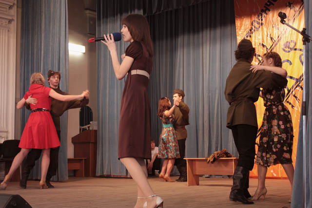Ведущие конкурса О. Шишмарева, В. Валюшин от номера к номеру постепенно вводили зрителей в тему концерта, который был посвящен Великой Отечественной Войне (1941-1945). Диалоги деда, ветерана, и внучки, студентки ИМЭИ, органично переплетались с номерами, подготовленными участниками. В частности, было исполнено несколько песен о войне: "Вальс в миноре" (А.Токарева, М. Изаксон), "Десятый наш десантный батальон", а также рэп собственного сочинения в исполнении Д. Мироманова. На концерте звучала и классическая музыка, пьеса для фортепьяно и флейты (К. Ситникова, Ж. Бедошвилли), играли баянисты (А. Хромцов и Р. Мешитбаев ), Н. Горбатская исполнила песню "Капелька", а А. Макрецкая - песню "Ищу тебя". Танцы были на любой вкус: от народных (К. Богатова, Н. Буторина) и ирландских (под руководством К. Балюры) до латино-американских (Я. Макольская, Ю. Соколовский) и восточных (Н.Буторина). Ну и, конечно, вальс, как свидетель военной эпохи был замечательно исполнен большим коллективом студентов (П.. Хисамова, Ж. Бедошвили, О. Конева, А. Головко, А. Саблин, В. Валюшин, А.Унжаков, В. Свалов).
