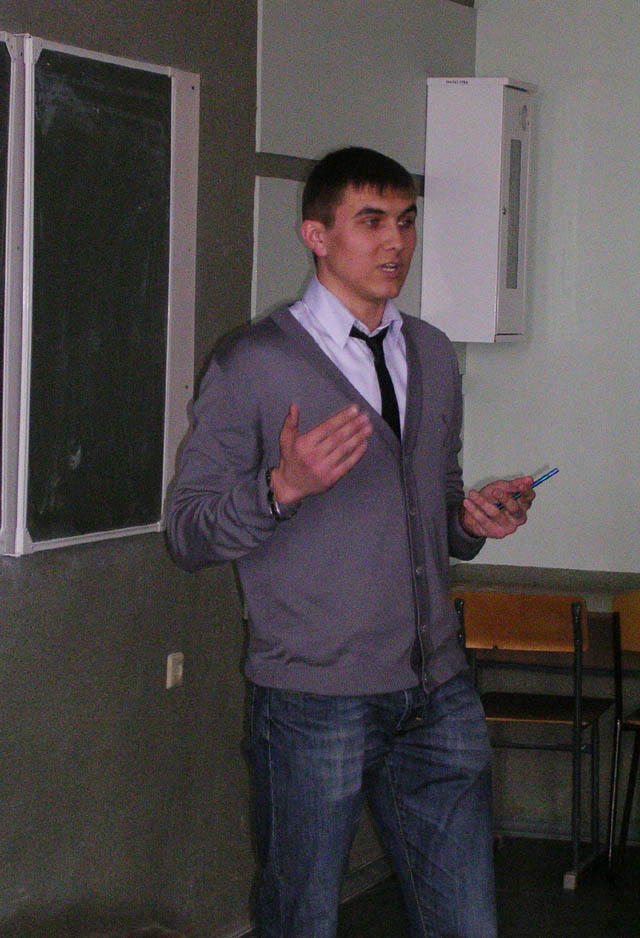 Первый тур конкурса – самопрезентация прошел в понедельник 12 апреля в 318 аудитории. Ребята должны были рассказать о себе и о своих достижениях за время учебы в ИГУ. Строгое, но компетентное жюри, состоявшее из трех преподавателей и трех студентов расставило балы следующим образом: