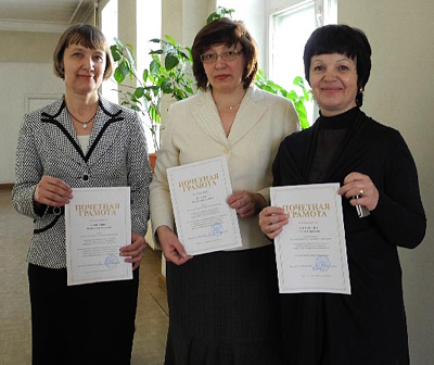 За многолетнюю плодотворную работу по развитию и совершенствованию учебного процесса, значительный вклад в дело подготовки высококвалифицированных специалистов Почетной грамотой Министерства образования и науки Российской Федерации награждены Головко Елена Анатольевна, Осипенко Лариса Анатольевна, Короленко Лидия Сергеевна.