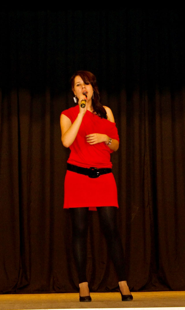 Первой из наших студенток, на сцену поднялась Ксения Ситникова, блестяще исполнила лиричную песню Alicia Keys “Falling”. Для третьекурсницы Ксении этот конкурс оказался первым, но волнение не сказалось на двукратной участнице фестиваля «Студенческая весна» и королеве ИМЭИ, по совместительству.
