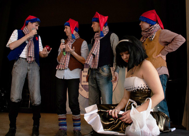 30 марта в актовом зале ИСН ИГУ студенты Института математики, экономики и информатики в очередной раз продемонстрировали свои таланты на фестивале "Студенческая весна – 2012". Подготовка к этому событию началась еще в феврале, поэтому готовность у ребят оказалась стопроцентная. Зрителям и жюри представили версию сказки о Белоснежке и семи гномах, причем гномы были почти все около двух метров ростом, что ничуть не помешало им блестяще сыграть и поразить артистизмом членов жюри фестиваля. Белоснежка, принц, мачеха, зеркало и жители волшебной страны, прекрасные песни, танцы эльфов и нимф, инструментальное исполнение - любителям творчества было на что посмотреть и послушать.